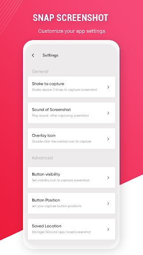 L'applicazione Snap Screenshot offre un metodo semplice per acquisire e modificare gli screenshot!Cattura lo schermo con un tocco!Raccontano all'individuo, con cui stai parlando, il modo in cui risparmi una cattura dello schermo.Al momento puoi risparmiare catture dello schermo totalmente classificate.