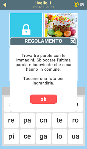 Trova tre parole con le immagini. Sbloccare l'ultima parola e indovinate che cosa hanno in comune. Toccare una foto per ingrandirla.