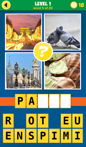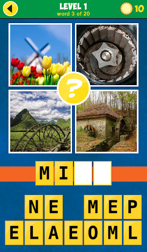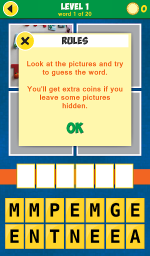 • The pictures are revealed one by one. Guess the word with less pics and earn extra coins!