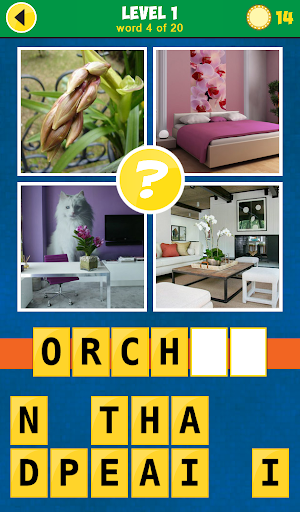 Look at 4 pictures and guess what word they represent. This sounds easy, but some puzzles can be tricky! If you like quiz and word games, you'll enjoy this fantastic brain teaser.