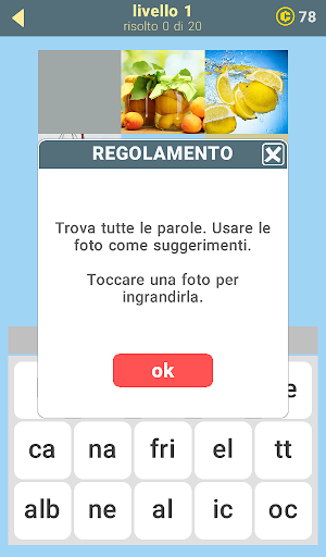 Due parole per ciascuna foto. 20 parole per livello. 580 parole per l'intero gioco.