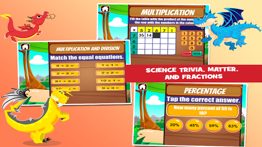 Sii stupito di quanto sia facile questo gioco a tema Dragon del quinto apprendimento. Questa app presenta la lettura di 5 ° grado, la quinta elementare matematica, la 5a elementare scienza e più esercizi di 5 ° grado.