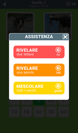 Due parole per ciascuna foto. 20 parole per livello. 600 parole per l'intero gioco.