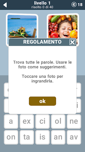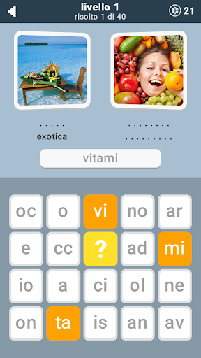 Due parole per ciascuna foto. 40 parole per livello. 680 parole per l'intero gioco.