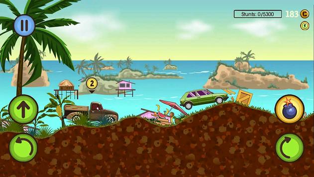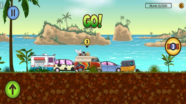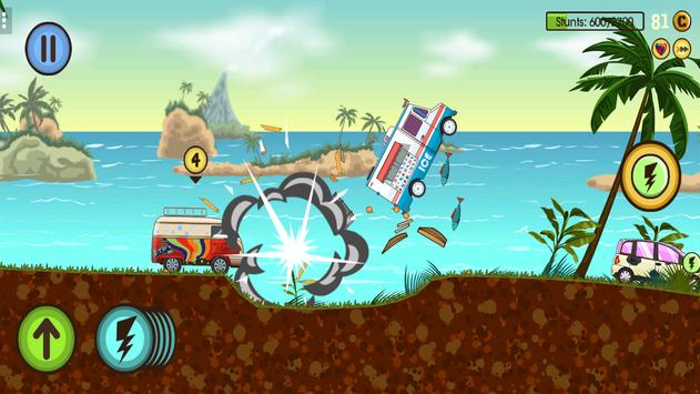 On a tropical island far away, a once-in-a-lifetime adventure is waiting for you! Compete in a crazy 2D car race for fame, glory and treasures! You start with an old hippie minibus which is reliable, but slow.