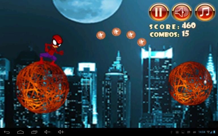 Spider Boy who exists in the New York City is attempting to emulate Spider Man and help New York individuals. Help him to gather coins on New York City and offer them to destitute in New York. Be that as it may, don’t stays on the balls excessively long on the grounds that the ball is dependably continue moving around and can get Spider Boy get Dizzy! You should keep it in mind that spider man can jump twice by touching the screen twice.