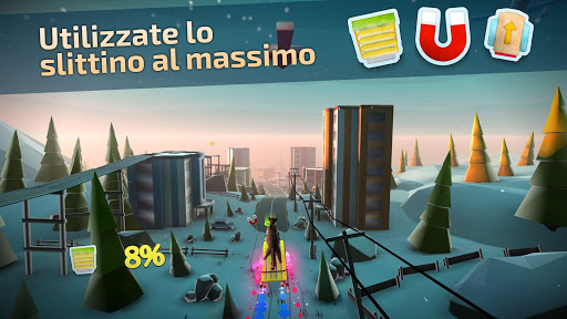 Scoprite i nuovi territori, correte via le citta`, paesi, montagne coperte di neve, fiumi ghiacciati, girate gli orsi e le auto in corsa. Raccogliete regali e tanti oggetti, come acceleratori, amplificatori dell`energia, bombe, etc. Sbloccate i nuovi slittini, nuovi animali (volpe, coniglio, lupo e gli altri), nuove attrezzature per lo slittino, nuovi livelli e le coppe con le tabelle uniche dei leader. Fissate i record mondiali, realizzate le ambizioni e ricevete tanta gioia!