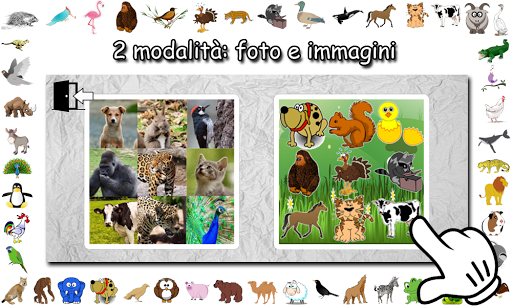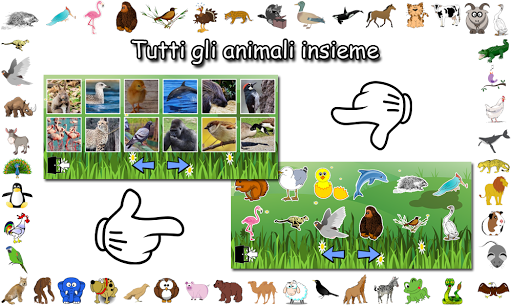 Nel gioco ci sono questi animali: scoiattolo, gabbiano, pollo, delfino, istrice, picchio, fenicottero, ghepardo, colomba, gorilla, passero, oca, tacchino, giaguaro, procione, anatra, orca, cavallo, gatto e molti altri.