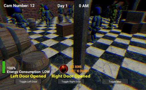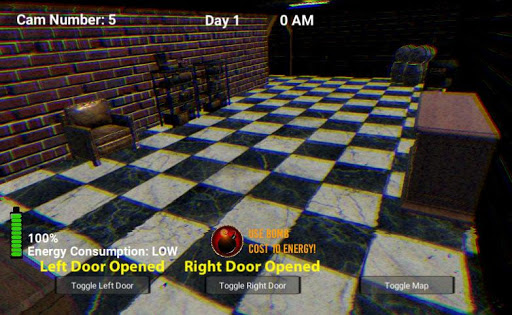 New trap game of Animatronic Night Jumpscare scary game! Defend yourself against animatronics and even worse creatures hiding in the shadows! Welcome to the pizzeria nightmare safeguarding yourself until the morning comes! Open or close the doors and switch on the light not to let corrupted animatronics attack you! Check the cameras and close the doors to protect yourself from the fierce animatronics.