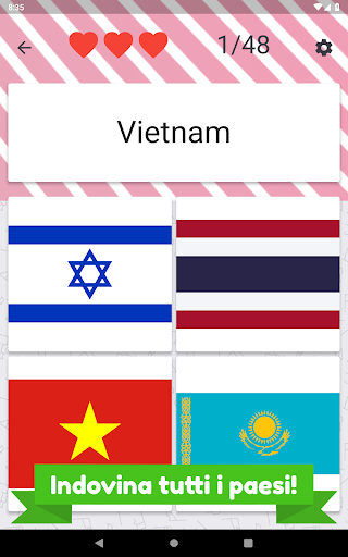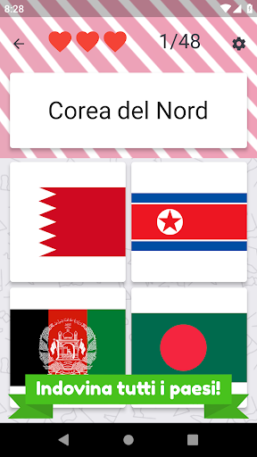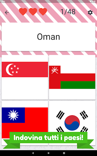 - 1 paese e 4 bandiere - Indovina la bandiera per nome del paese.