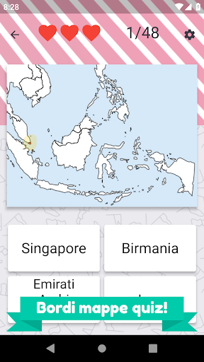 Sai dove si trova Singapore? Cerca di indovinare la posizione del paese tramite la mappe di contorno. Cerca di nominare più paesi che puoi!