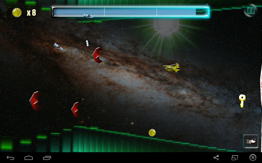 Toccare lo schermo per volare, evitare e sparare ai nemici nello spazio.