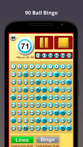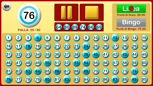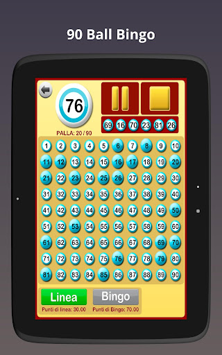 Quando inizia una partita di bingo, l'applicazione comincia a chiamare le palline del bingo. Il gioco può essere messo in pausa e riavviato, se necessario, ad esempio, per verificare se la linea o bingo è corretta, per controllare tutti i numeri già chiamati, etc.