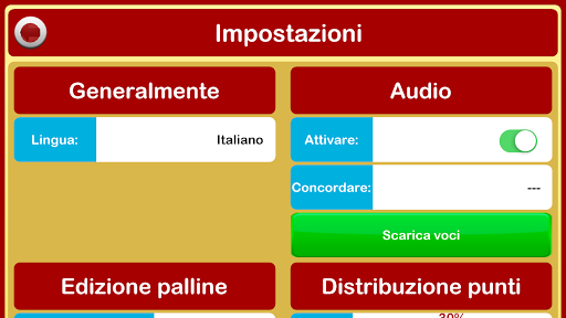 - Modalità automatica: L'applicazione inizia a chiamare le sfere di bingo fino alla pausa o fino a quando non ci sono più palline a sinistra. L'applicazione permette di configurare la velocità con cui vengono chiamate le palline.