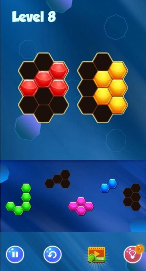 Drag and drop hexa blocks to fill the given shapes and unlock more Levels.