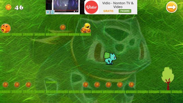 An amazing adventure game for free is come true for you.. This Bulbasaur Go is free for everyone and specially for fans of Bulbasaur from Pokemon... Tap to jump and double tap to long or high jump.. there are many hindrances.. Help Bulbasaur by running and Jumping. There are a lot of levels and more coming. collect more coins and you must complete the mission from the lowest level up to highest level. Thank You for download and play this game and We hope you like this Bulbasaur Go..