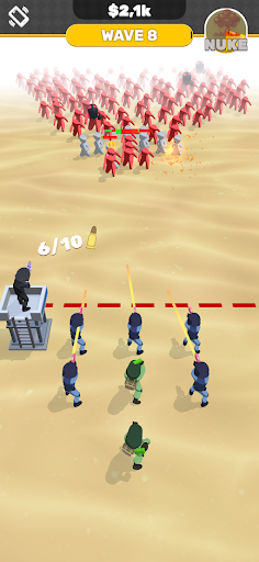 Scopri nuove reclute per unire i tuoi ranghie migliorare la tua potenza di fuoco. Come organizzerai le tue truppe? Pistol, fucile, minigun, granata, lanciatore di razzi, serbatoio, cecchino o sharpshooter, sono tutti disponibili per aiutarti a contrastare le onde.