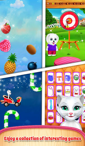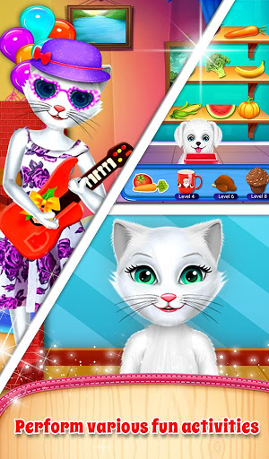 Il gioco del ciclo di vita di Cat include una raccolta di attività divertenti che un Kitty ha bisogno di eseguire. Devi aiutare il gattino ad avere un bagno, giocare con diversi strumenti musicali e ballare sulla musica nel gioco di danza del gatto. Otterrai monete per alcune attività che completi in questo gioco di gatti. Queste monete prenderanno la crescita del gatto al livello successivo. Più ottieni monete il livello successivo verrà sbloccato velocemente. Così tante attività e compiti saranno sbloccati ad ogni livello. Ci sono così tanti mini-giochi per il kitty come il gioco di tiro con l'arco, saltando il ballo, tagliare i frutti, unisciti ai pezzi, volare kitty e abbinando la carta. Ci sono anche attività come nutrire il gatto, acquistando cibo e frutta per il gatto e per farla dormire. Ci sono anche decorando la casa del gatto. Quindi eseguire molti compiti divertenti per intrattenerti per ore in questo gioco di crescita di gatti.