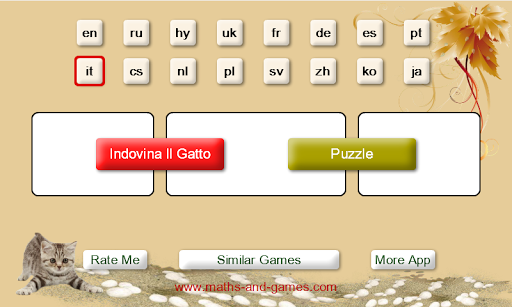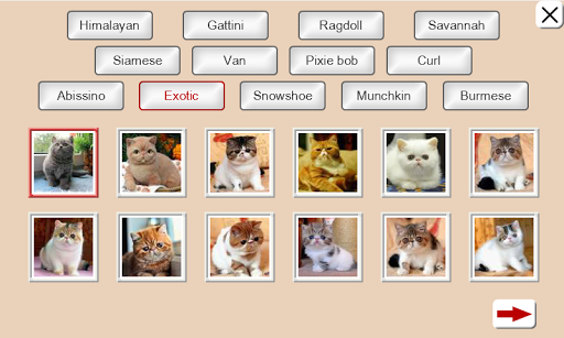 Nel gioco ”Puzzle” sono le 13 "Himalayan", "Gattini", "Ragdoll", "Savannah", "Siamese", "Van", "Pixie bob", "Curl", "Abissino", "Exotic", "Snowshoe", "Munchkin", "Burmese".