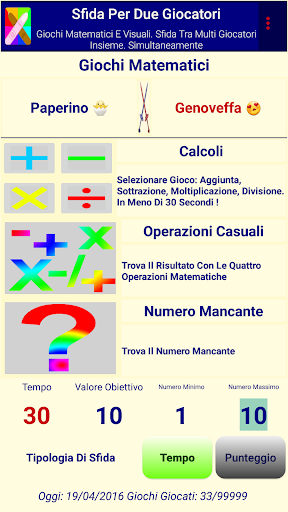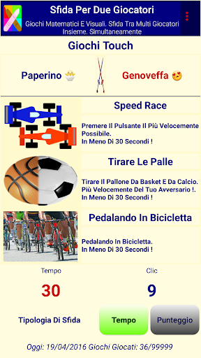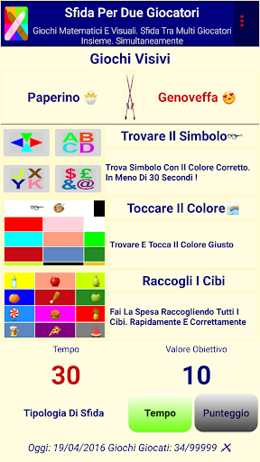 Ogni tipologia di gioco ha 2 modalità: tempo o valore. I valori sono personalizzabili.