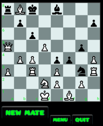 ♘Guess The Move: Think about the right move to mate. If you don't find the mate you can ask the chess engine for the solution. Also you can move as in the Play mode, if you don't mate the game will continue against the chess engine. Great for beginners to learn!