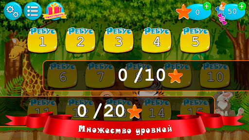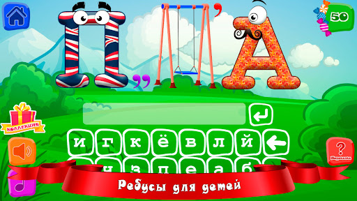 Nel gioco per bambini puzzle per bambini Ci sono diverse sezioni: animali, frutta e verdura, piante, piante, giocattoli, vestiti, spazio e molti altri.Se i bambini hanno difficoltà a indovinare un Rebus, un suggerimento sotto forma di lampadina vicino a un campo per entrare in una risposta li aiuterà sempre.Quando fai clic su questo pulsante, è possibile scegliere un prompt per te.E le parole di lode, che accompagnano il bambino durante il gioco online, danno ancora il desiderio di risolvere i puzzle.Smart Puzzle Rebus sarà interessante per i bambini di 7 anni.