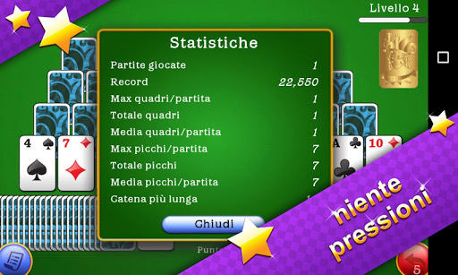 ♣ niente pressioni, il punteggio non è influenzato dal tempo impiegato per risolvere il solitario