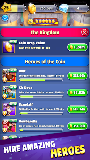 Scarica e prova l'eccitazione della moneta che spinge per te.Fallo pioggia, alzare le pareti, scuotere il castello e rastrellare in tutte le monete.Assumi i fedeli eroi, rendili più forti e diventano i più ricchi nel regno!