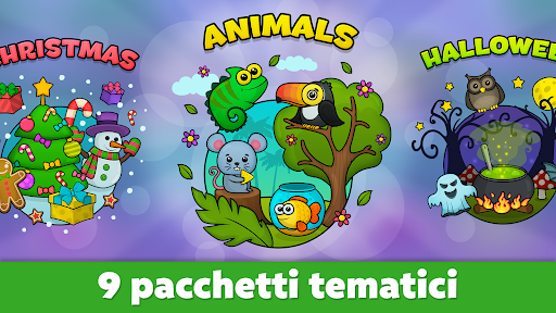 Questo gioco educativo per bambini è stato appositamente studiato per bimbi dai 2 ai 6 anni. Poiché i giochi per bambini sono così importanti per lo sviluppo dei più piccoli, la nostra app è stato creata sotto la sapiente guida di esperti in educazione prescolare e psicologia infantile. I puzzle per bambini presenti nella nostra app sono dunque idonei all’apprendimento prescolastico.