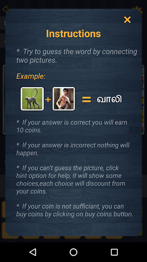 Provide 2 pics for you, and read the 2 pics to guess the words, combine them to create the final word! Keep concentration, and train your mind. Just enjoy it!