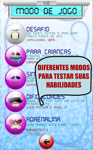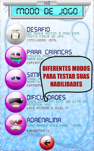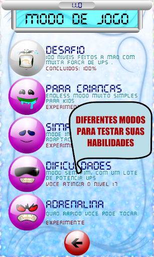 Inoltre ci sono 4 modi infiniti che si può provare: la modalità bambini, semplice, le difficoltà, l'adrenalina.