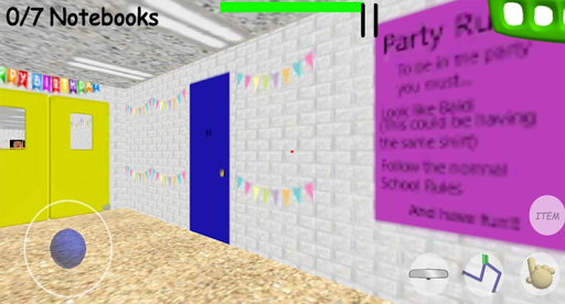 Finally, you have to escape from Baldi birthday party school house, just collect the 8 notebooks and all the doors will be open to you in order to escape from this Baldi birthday bash badge party mod game. To collect a notebook you need to answer math questions correctly, otherwise Baldi will be angry and can beat you or punish you. He will move super fast so you can’t escape quickly.