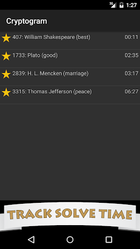 With regular play, we believe you can increase your mental focus, concentration, patience and logical deduction skills, all while learning popular quotes and having fun. If you’ve never tried a Cryptogram before, the first few games may leave you puzzled, but once you get the hang of it your solve time will decrease and you might just find yourself hooked!