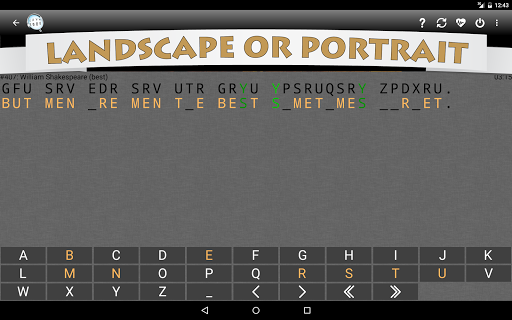 Play the role of a cryptographer tasked with the challenge of breaking an encrypted quote. To play, you must deduce the one-to-one letter substitution to decode the encrypted phrase by some famous (or infamous) author. While the object of the game is simple, figuring out the solution can often be difficult. Keep at it and perseverance will pay off.