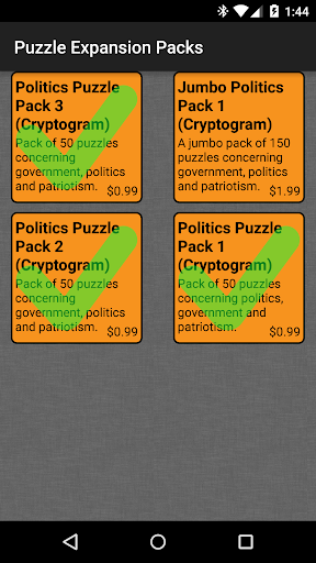 To start you off, we have included an abundance of quotes from a wide variety of historical and contemporary figures, and you can download additional puzzle packs from inside the game whenever you want more. Check back often, as the puzzle library is always undergoing growth. We offer standard-sized puzzle packs of 50 quotes and jumbo packs for the voracious player, which offers 150 puzzles all at once for a reduced cost. Collect them all!