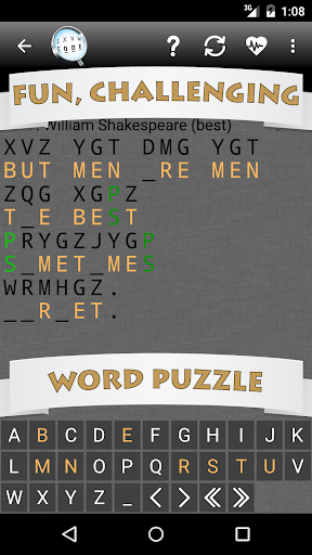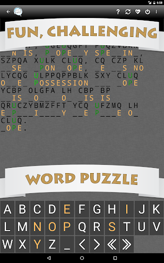 Exercise your mind with our exciting and challenging new word puzzle game, CRYPTOGRAM!