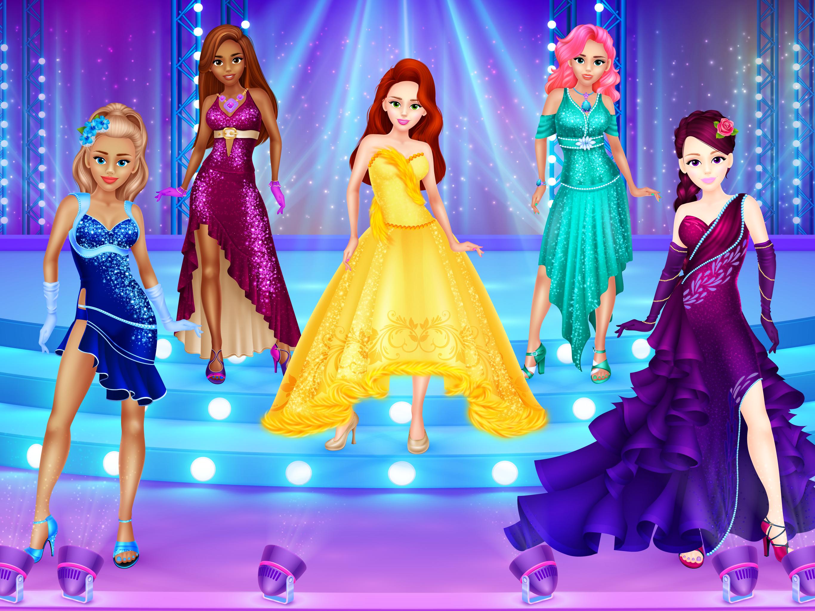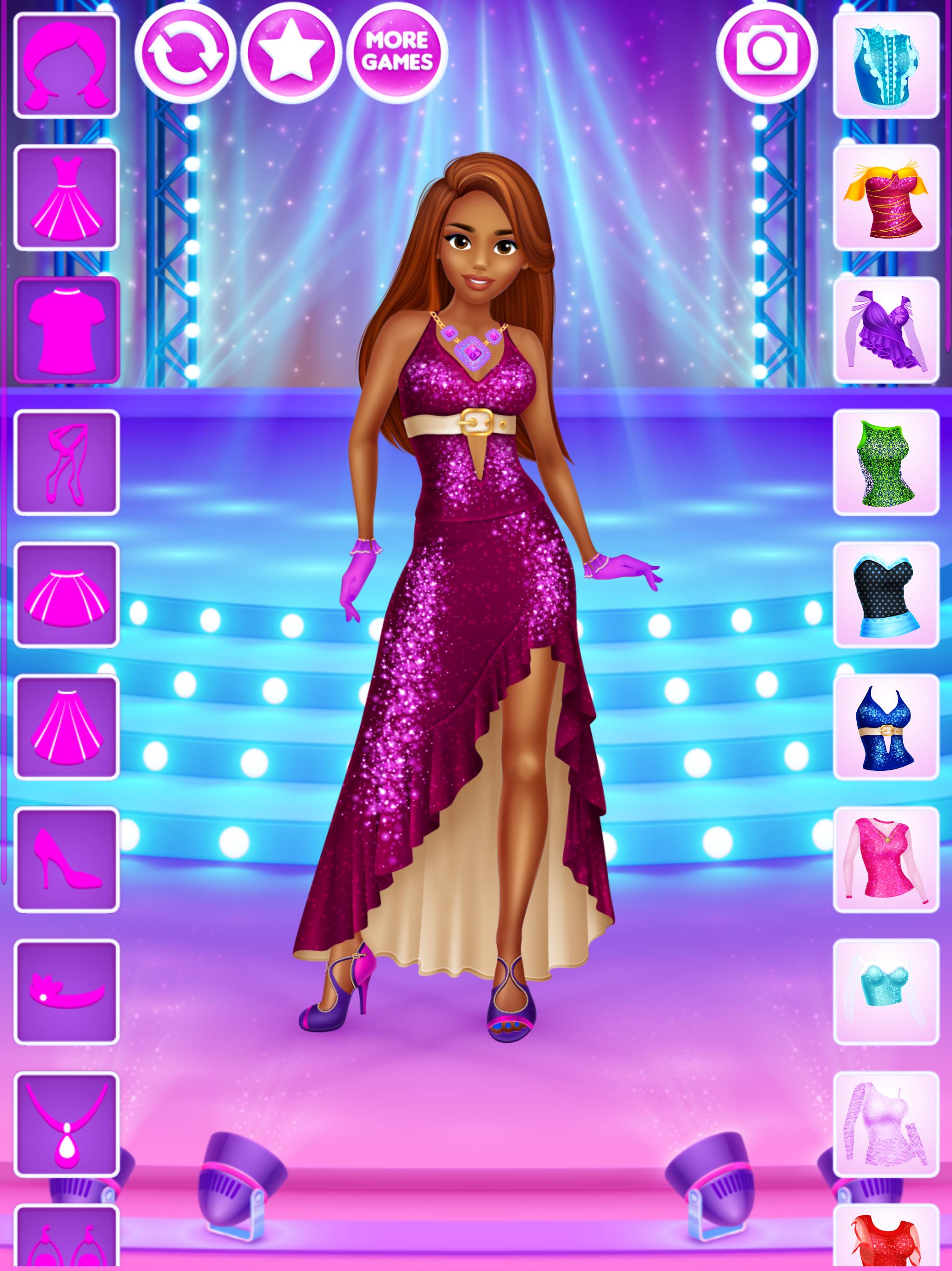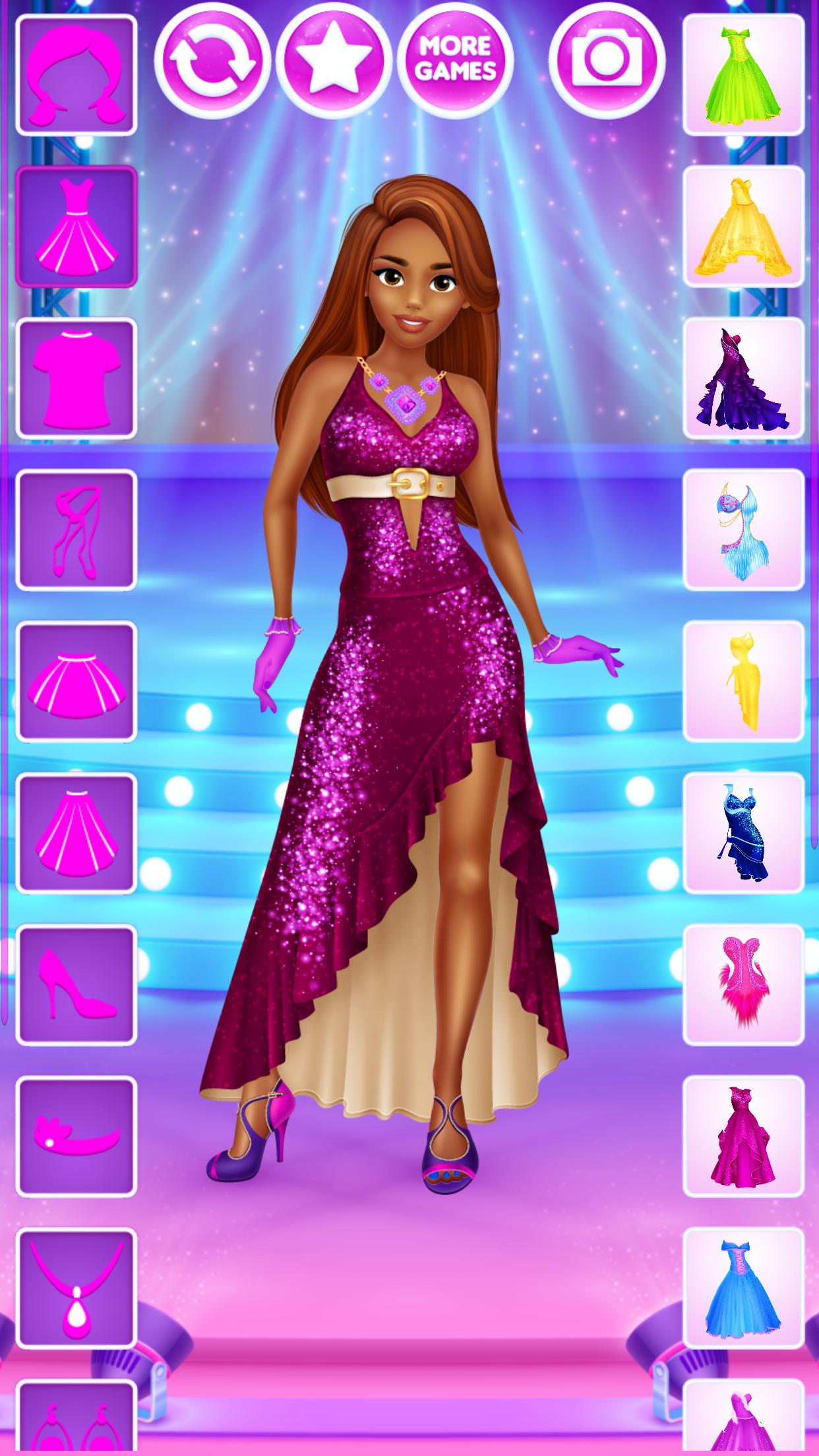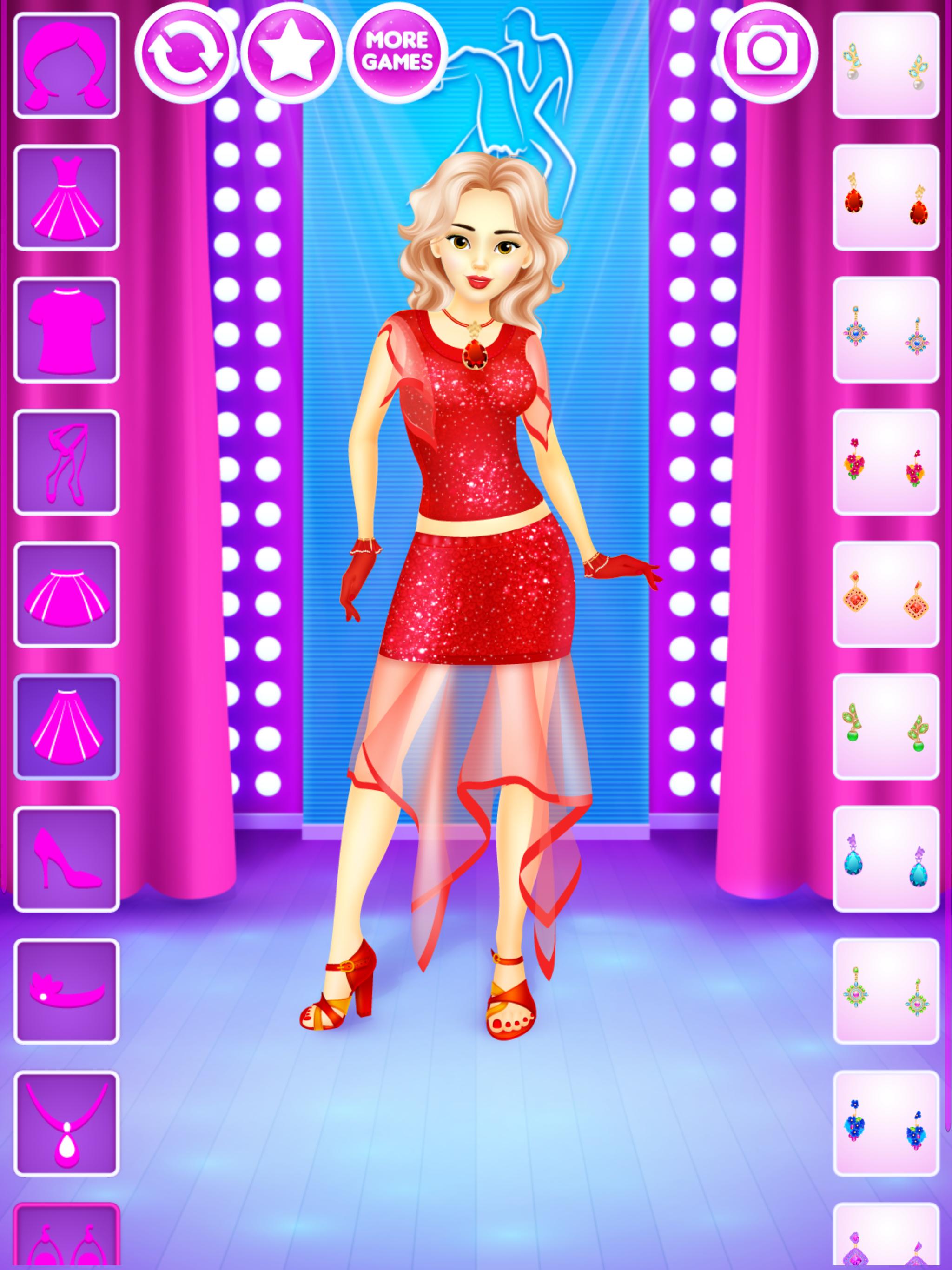 For all girls who love dancing this dressup game gives a chance to design outfits for various kinds of dances. 6 dolls to dress up, on 4 backgrounds and, most importantly, with over 200 clothing items, accessories and hairstyles to choose from. All of that is completely free, without any locked items, in-app purchases or similar annoyances.