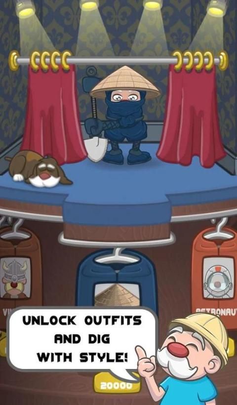 ** Unlock Amazing Outfits – Use your gold to unlock new outfits in the shop for Grandpa Digger! Be a Ninja, Viking, Football player, Knight, or even a Pirate King!