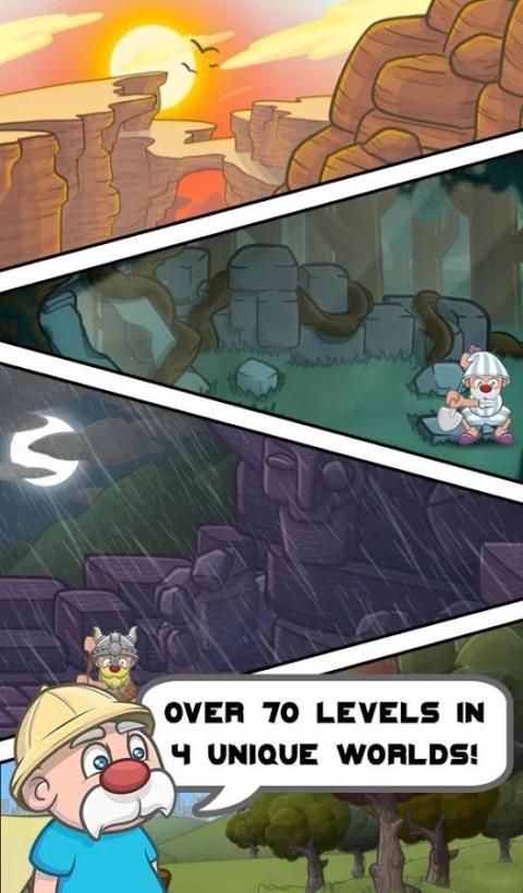 ** 4 Unique Worlds - Find new treasure maps and travel to 4 unique worlds, each filled with harder puzzles, new challenges, traps, and enemies! And don’t worry - Grandpa Digger’s sidekick, Dog, will be there to explain each new mechanic.