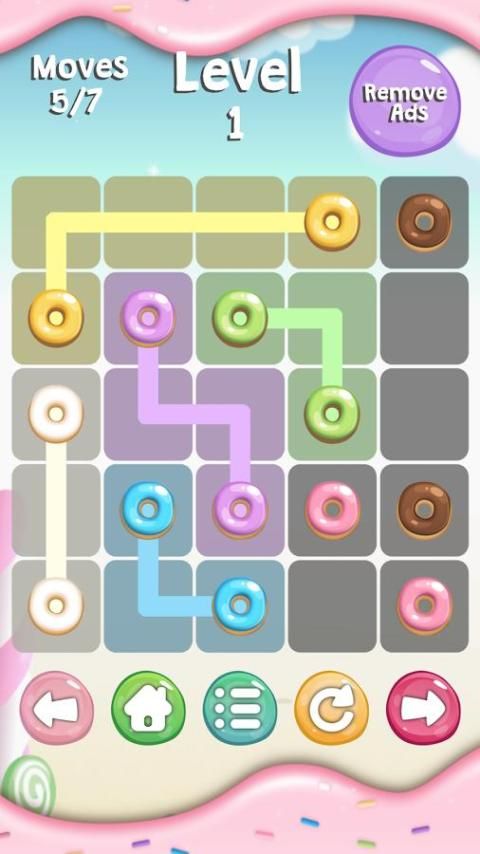 Draw Line: Sweet Edition is a simple logic puzzle involving finding paths to connect dots in a grid.
