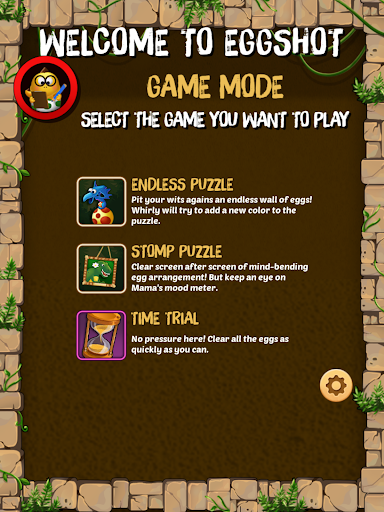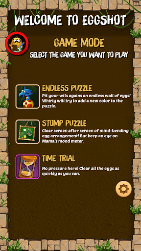 Stomp puzzle: aLa disposizione del puzzle appare sullo schermo.L'obiettivo è cancellare l'accordo sparando le uova abbinate del colore corrispondente accanto.Tuttavia, ogni uovo che scatti aumenterà il contatore della rabbia di Mama Dinosaur.Ogni volta che il contatore diventa pieno, Mama Dinosaur spinge il puzzle in basso con il piede, rendendo la tavola più difficile da realizzare.