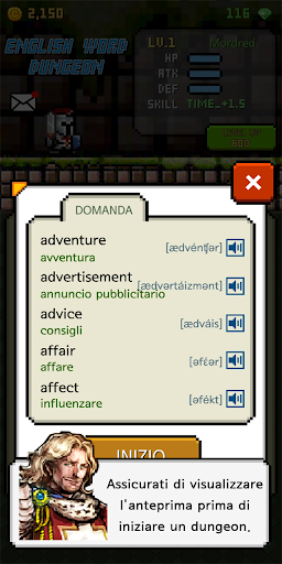 ""English Dungeon"" svilupperà la tua capacità di leggere le parole inglesi mentre la suoni.