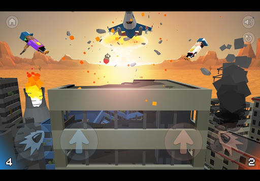 - Click on the jump button to jump. Hold down the shooting button and release when the weapon is aimed at the enemy.