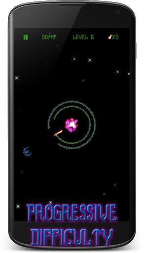 In each level, use your radial-aim skills to locate the angle where the gaps between the rotating shields overlap. Then, position your ship in that angle and shoot, when the time is right, to destroy the ether blob in the center. As you progress through the galaxy, new challenges will appear to test your skills, such as shields, portals, and speed modifiers. How far can you get?