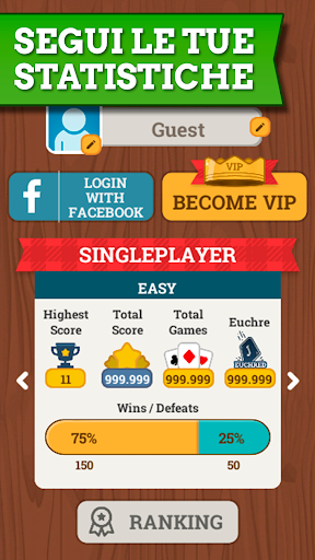 "Più di 100.000 persone hanno scaricato Euchre: ora hanno la possibilità di diventare membri VIP iscrivendosi al gioco, per non visualizzare più gli annunci!