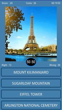 Questo gioco a quiz gratuito è un modo semplice per conoscere i luoghi di fama mondiale in modo rapido e veloce. Scopri nuovi luoghi, città e paesi e pianifica il tuo prossimo viaggio o le vacanze verso quella destinazione che non hai mai sentito o conosciuto prima. Un ottimo modo per aumentare le tue conoscenze di viaggio nel mondo con i tuoi familiari e amici condividendo i tuoi punteggi migliori.
