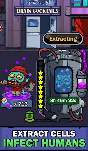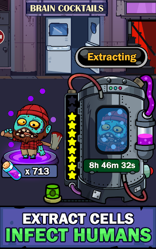 Start from the bottom with a cute zombie and with big dreams of achieving zombie domination. Tap n' swipe to collect viruses, spawn zombies, buy upgrades and repeat. It's simple as that. There are many hilarious zombies to unlock and humorous upgrades to buy.