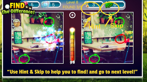 5. Utilizzare pulsante suggerimento per aiutarvi a trovare, Usa fermare il tempo a nessun periodo di tempo limitato, Usa saltare per andare il prossimo livello