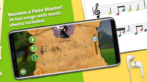 Suonerai gradualmente delle tracce musicali uniche con le quali imparerai ciascuna nota sul tuo flauto. Quando avrai finito il gioco, sarai in grado di suonare fantastici brani con il flauto! ;)