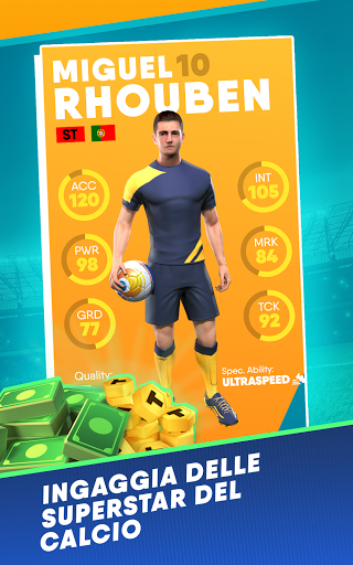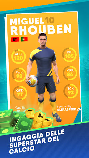 Prendi parte a sfide ed eventi giornalieri e settimanali per sbloccare superstar e fantastiche ricompense. Ottieni dei buoni piazzamenti con la tua squadra e conduci le tue superstar alla vittoria delle tre competizioni più prestigiose (campionato, Champions League e coppa).
